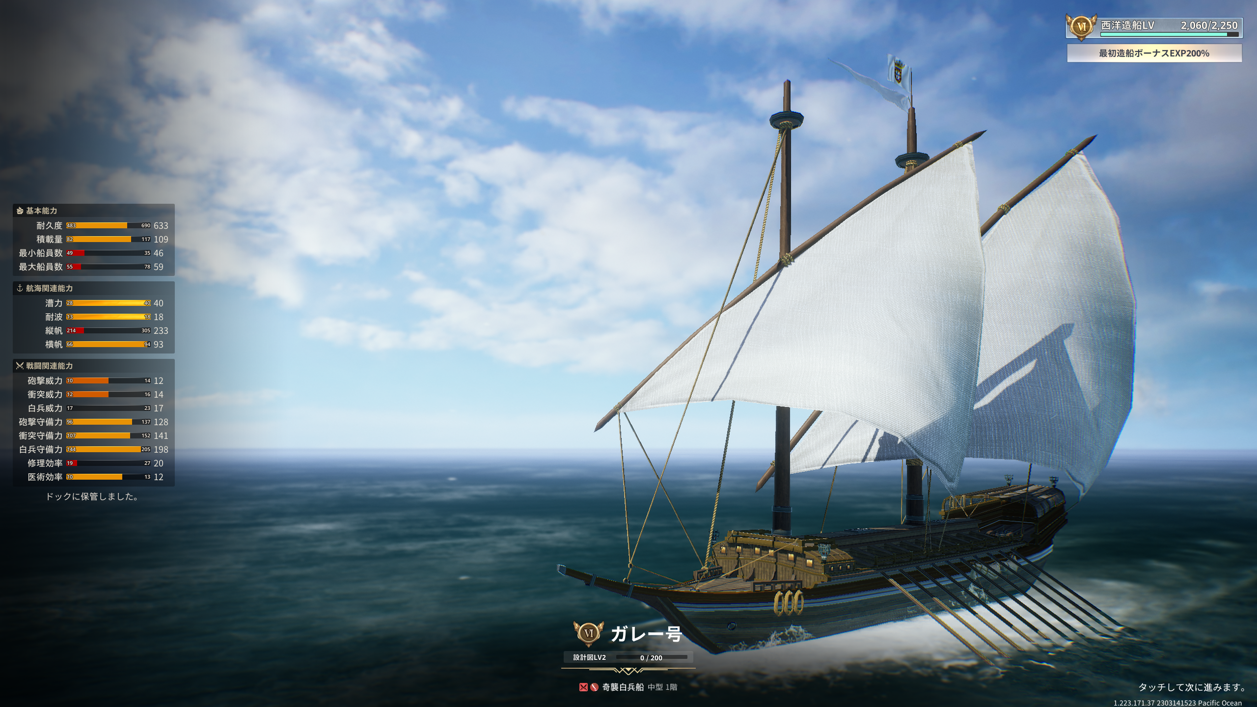 航海士のレベルがⅥの船に乗れるようになったので、旗船以外の編成を変更しました。