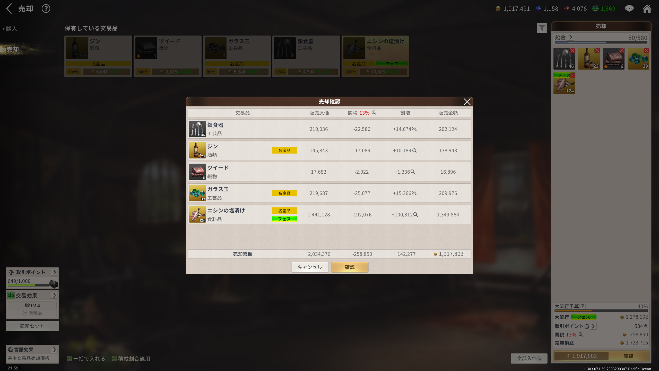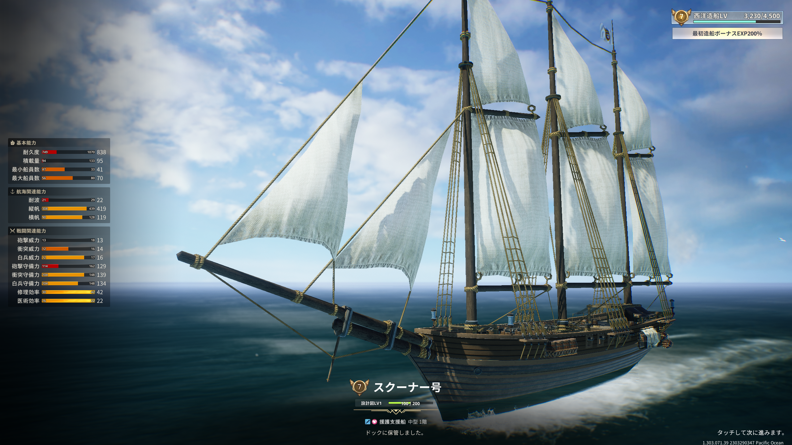 全てレベル7の船になりましたが、耐波45はクリアできていません。高級アイテムの獲得があれば別ですが、レベル8の船にするまでは、アフリカ東側の探索や交易を楽しむようにしようと思います。
