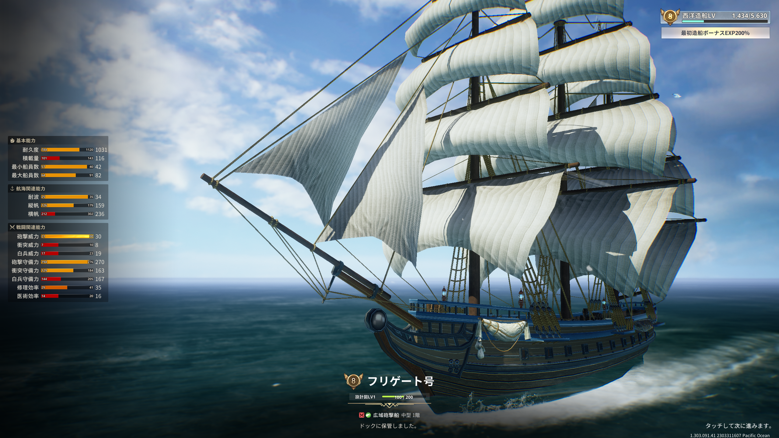 造ったフリゲート船は重キャラック船と入替て旗艦としました。
