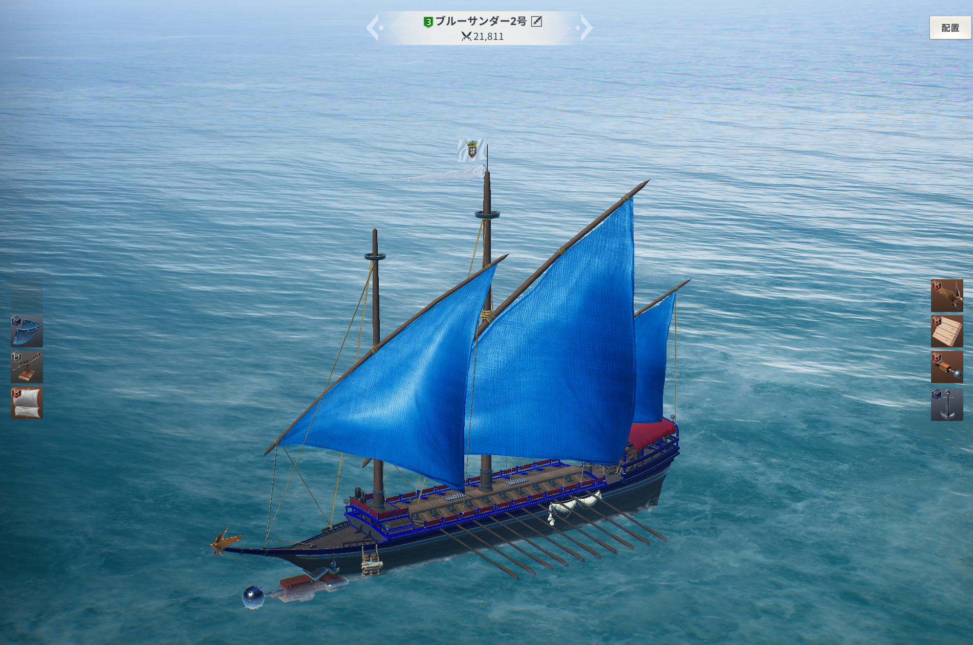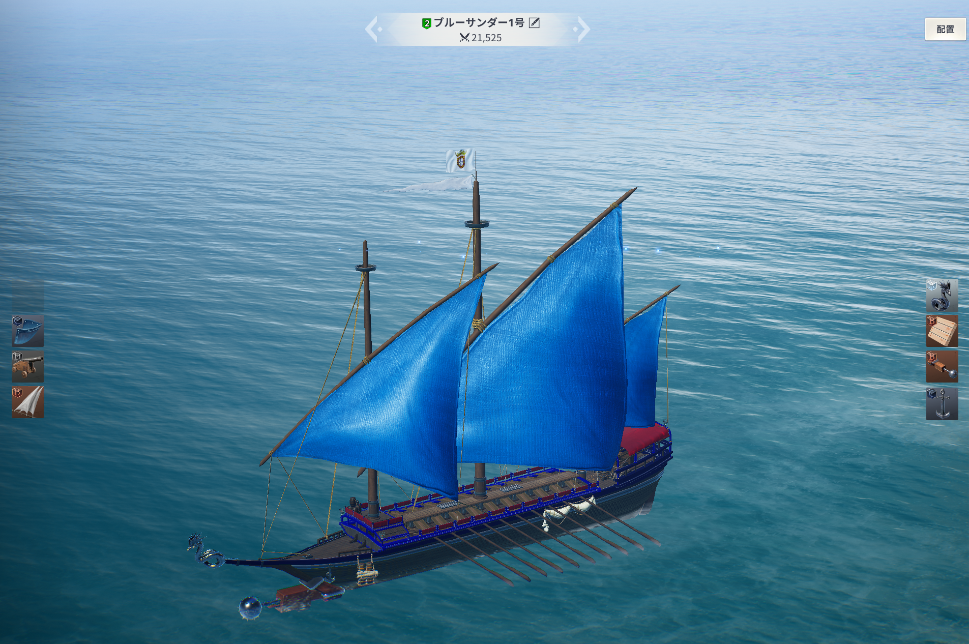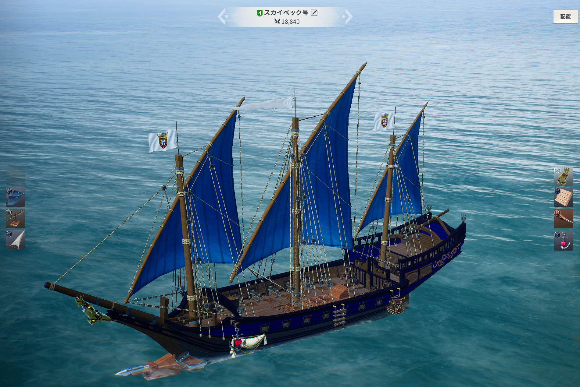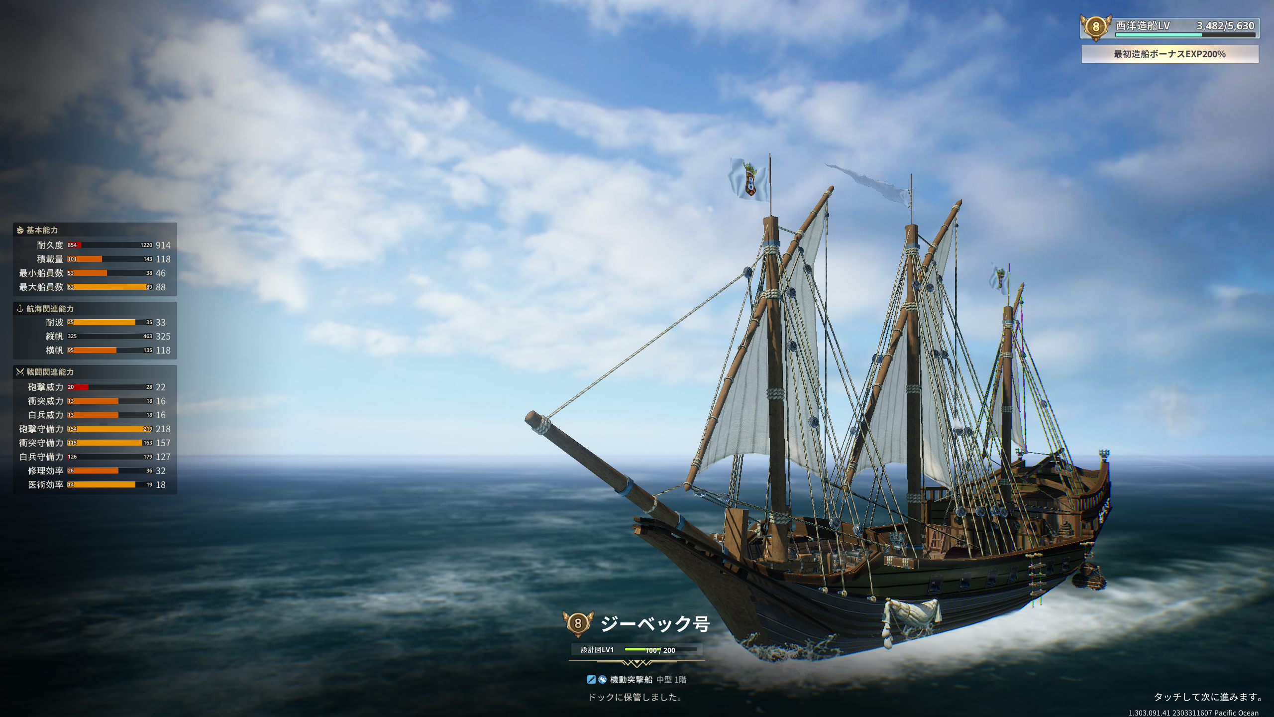 ジーベック船が意外と大きく、実際のビジュアルもカッコいい(図鑑のサンプルと比して)と思いました。そろそろ、戦闘用と交易・探検用の編成を別々に作ろうかと考えていますが、ジーベック船を交易・探検用の旗艦にしても良いかなと思ったりしています。