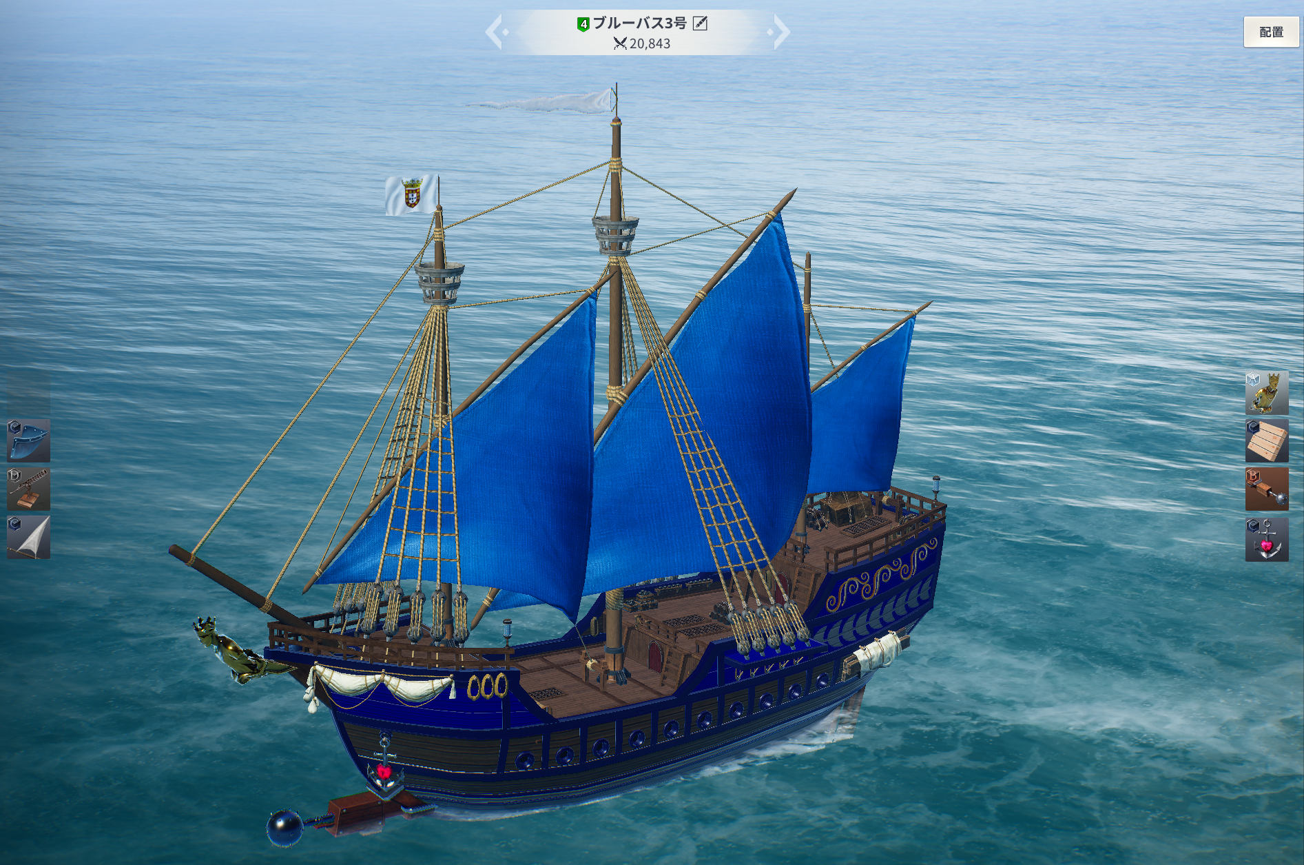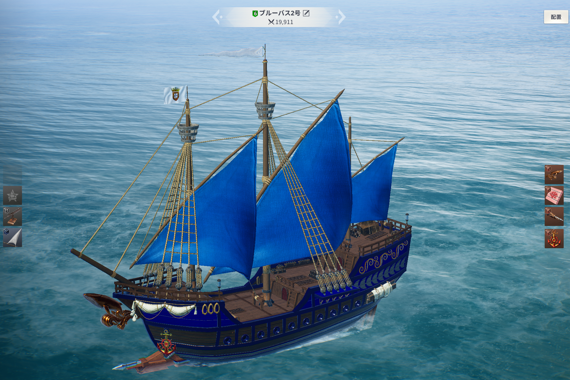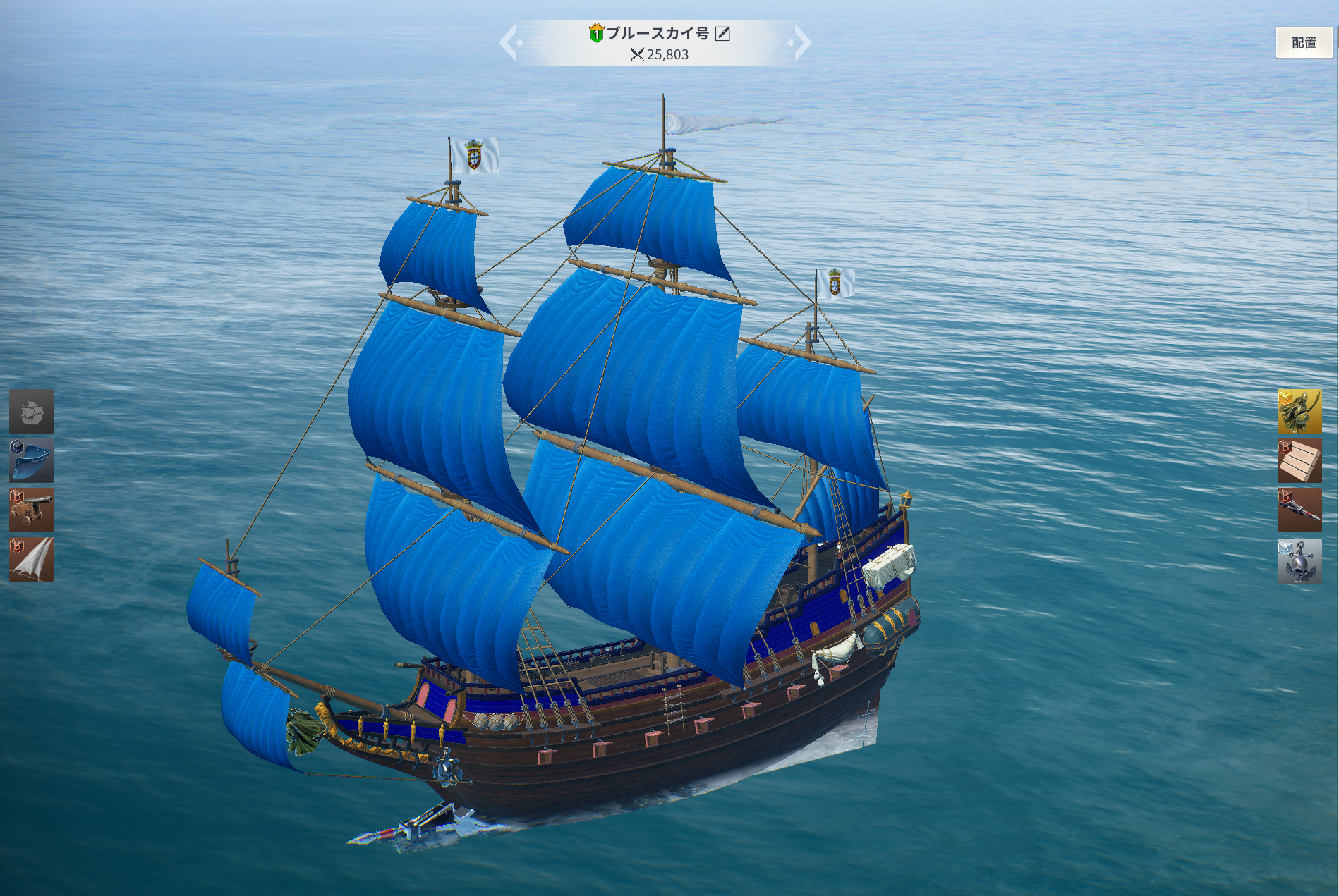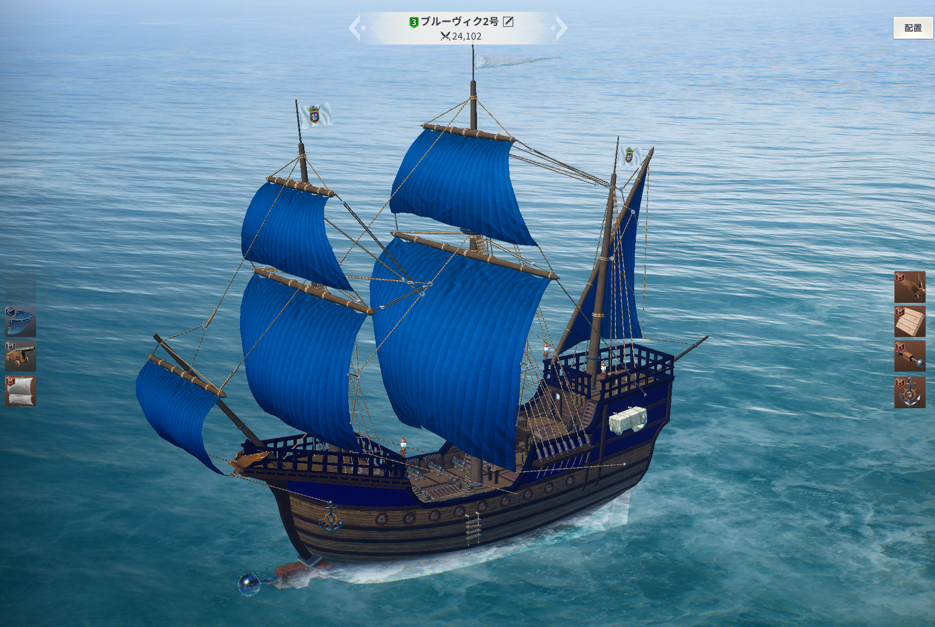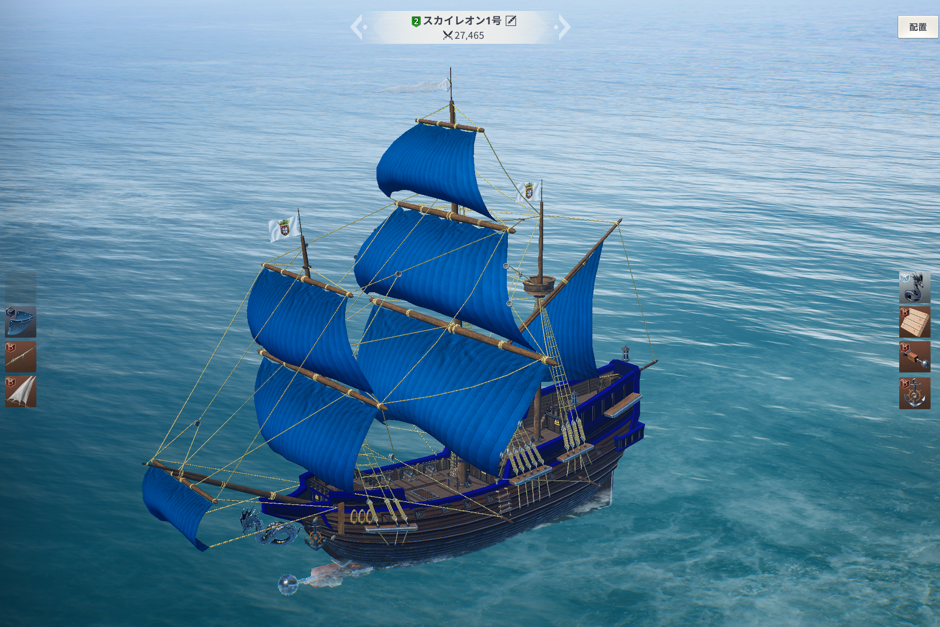 初めて10ランク造船を完了させました。デ・スペルウェール船を造りましたが、装飾が施されていて、カッコいいです。外観は結構気に入っています。性能もまずまずだったので、大満足です。これから順次ランク10の船に置き換えていってさらに東へ進めるようにしていきたいと思います。