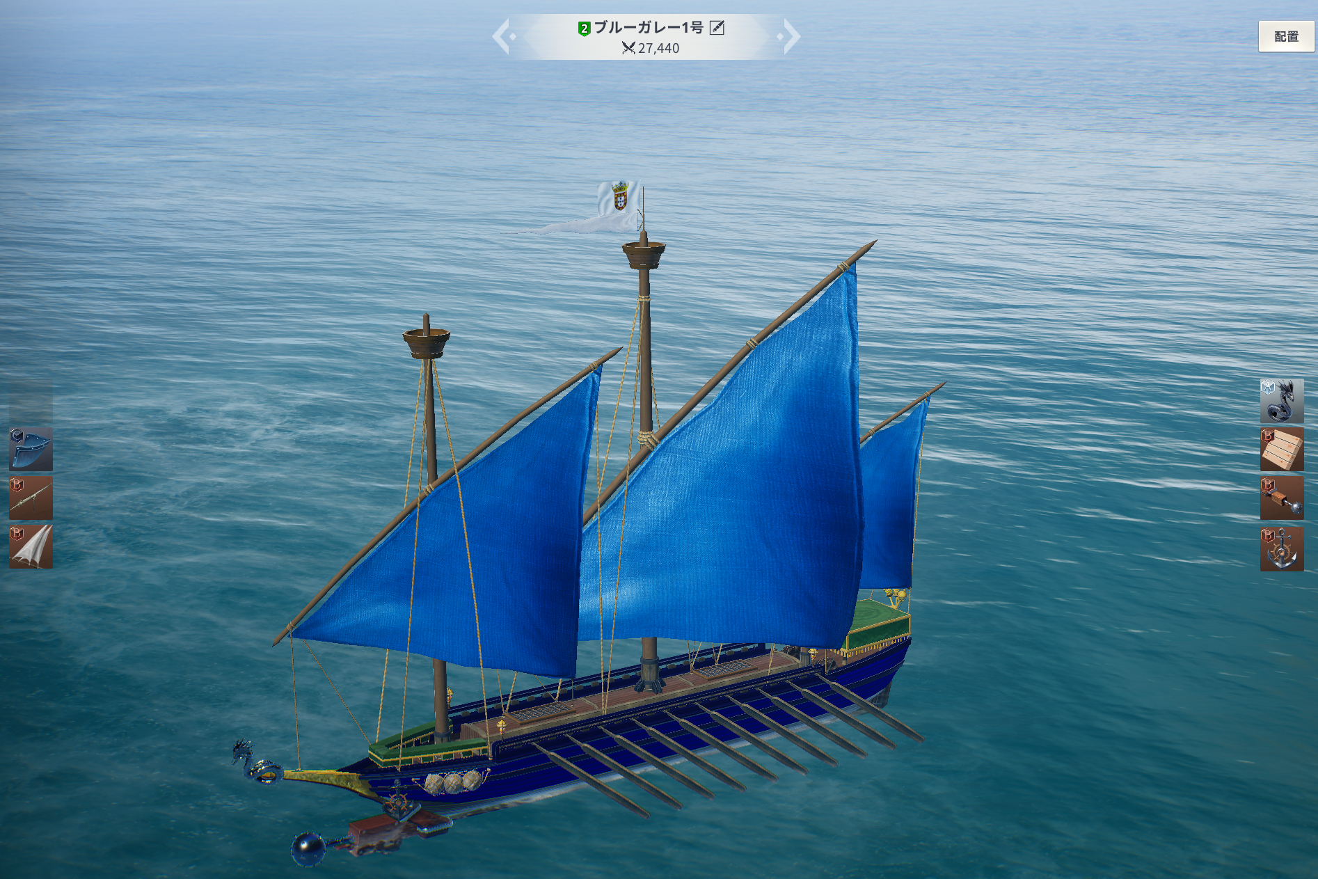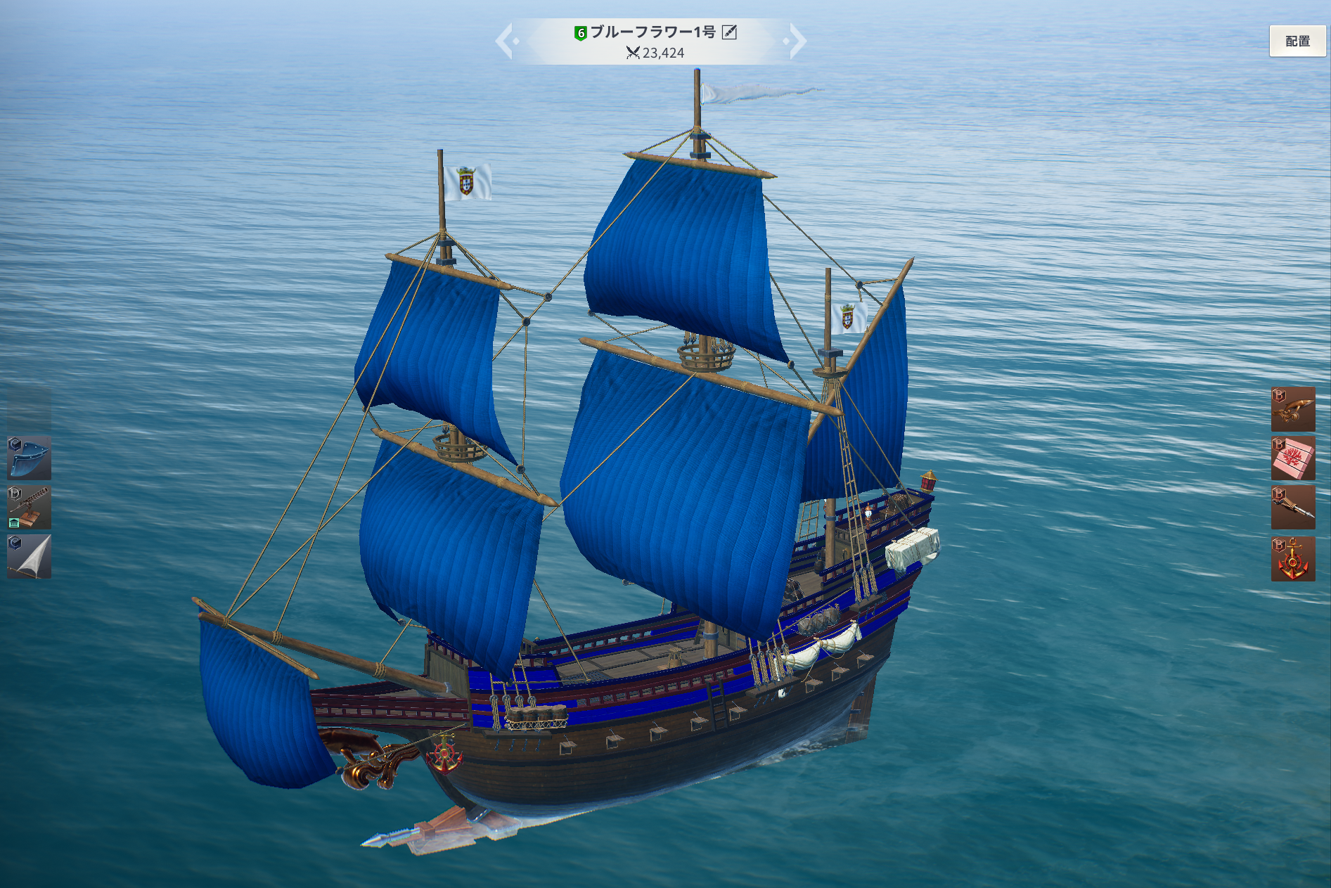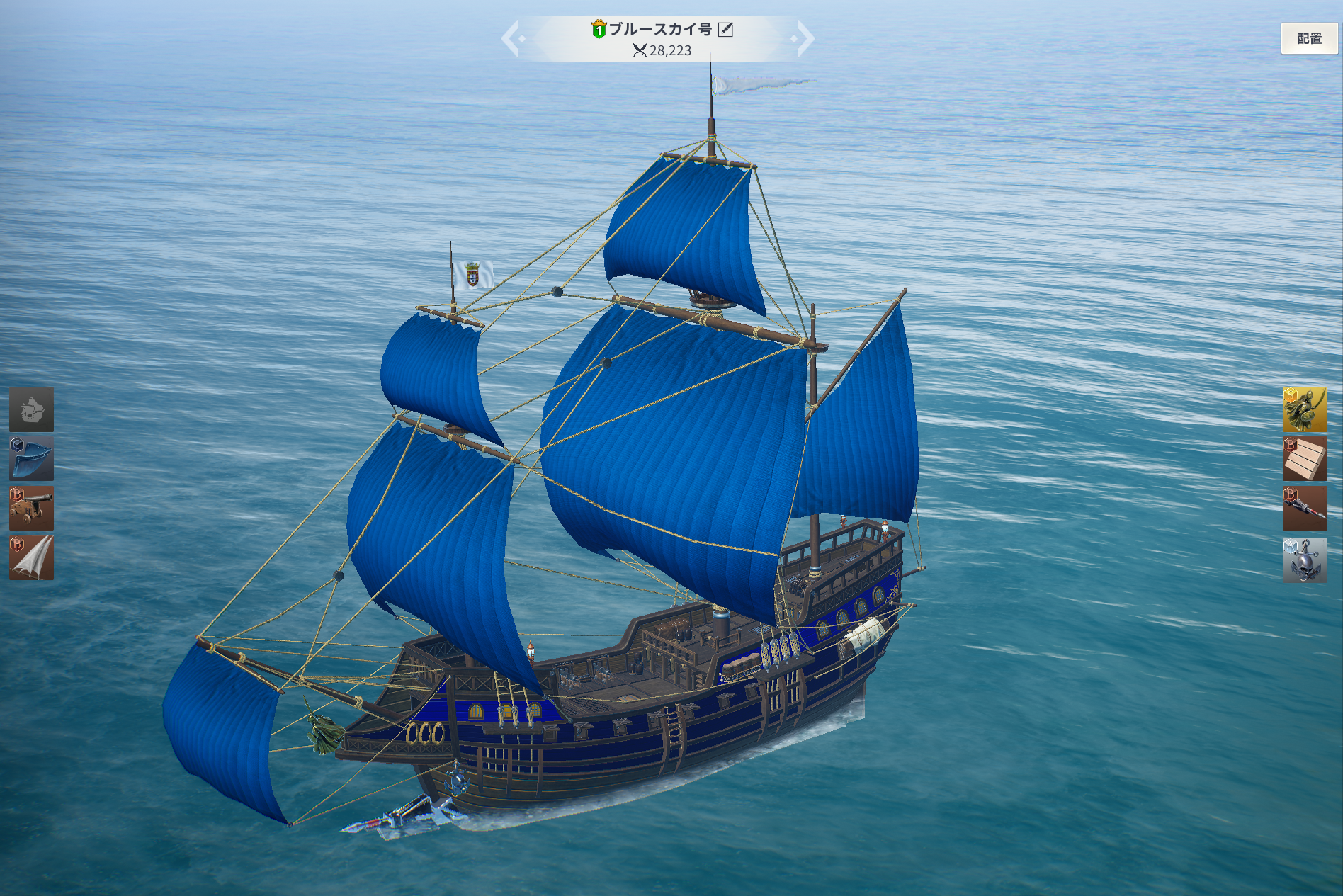 ローズウッド系の造船材料はストックができていたので、2種類同時に造船しました。もう一つはコルヴェット船です。これは耐波が最低レベルでしたが、造り替えも考えているので、そのままにしました。