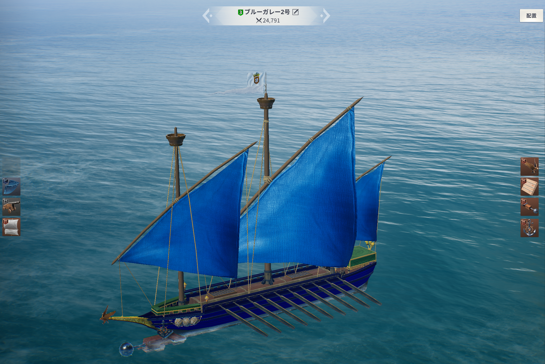 初めてランク11の船を造りました。まずは、エスメラルダ船です。冒険用なので旗艦としたいので、使って再出庫させました。