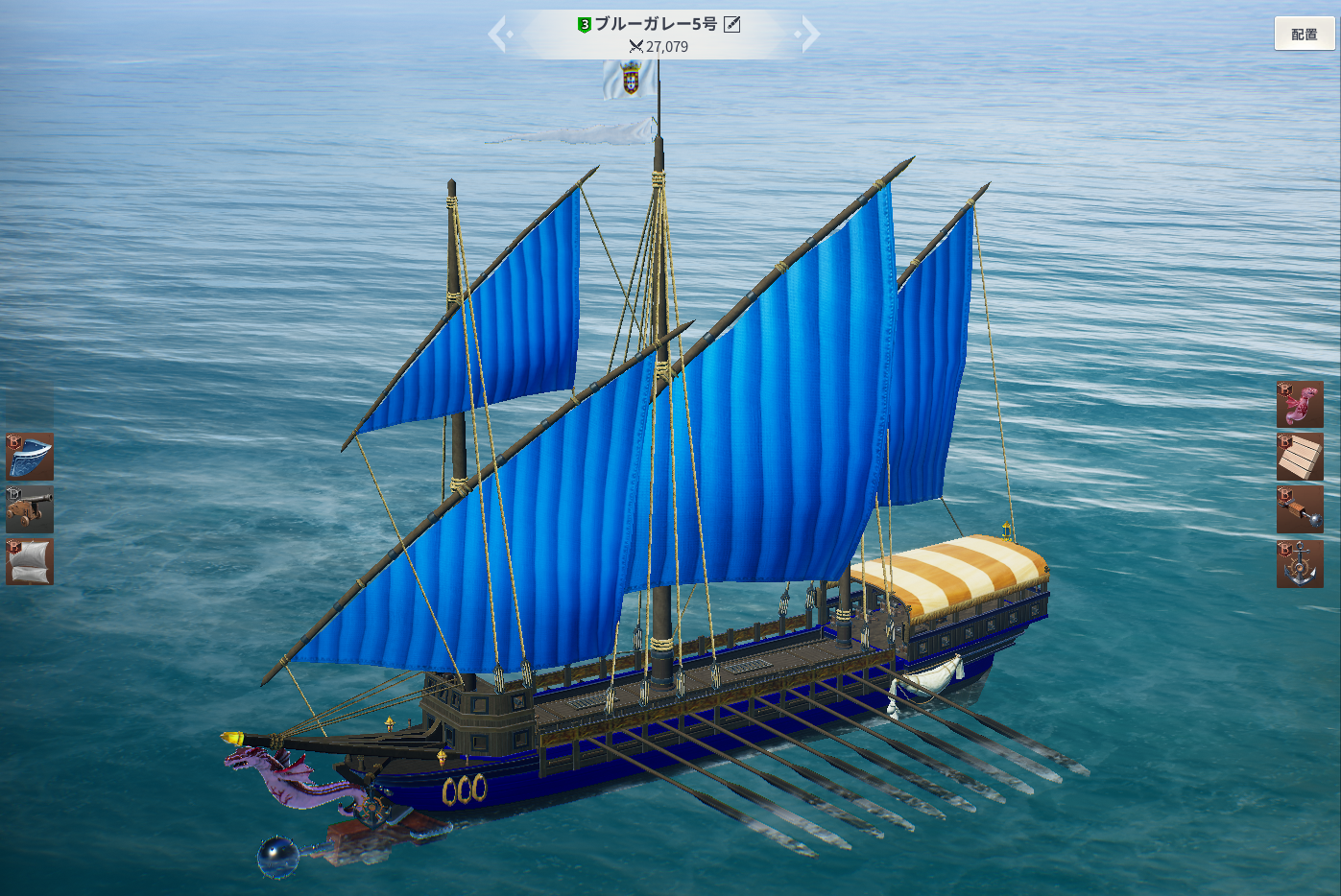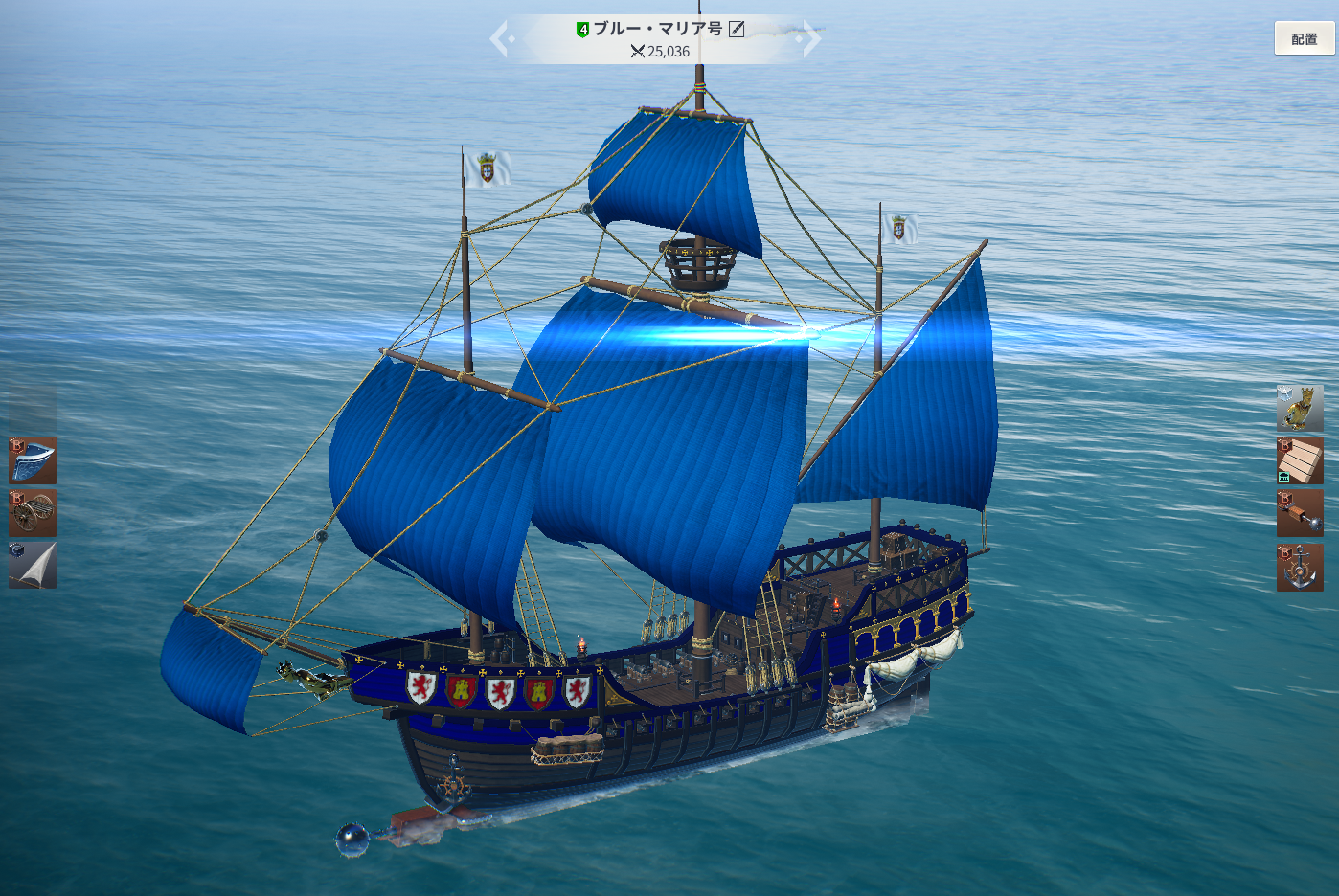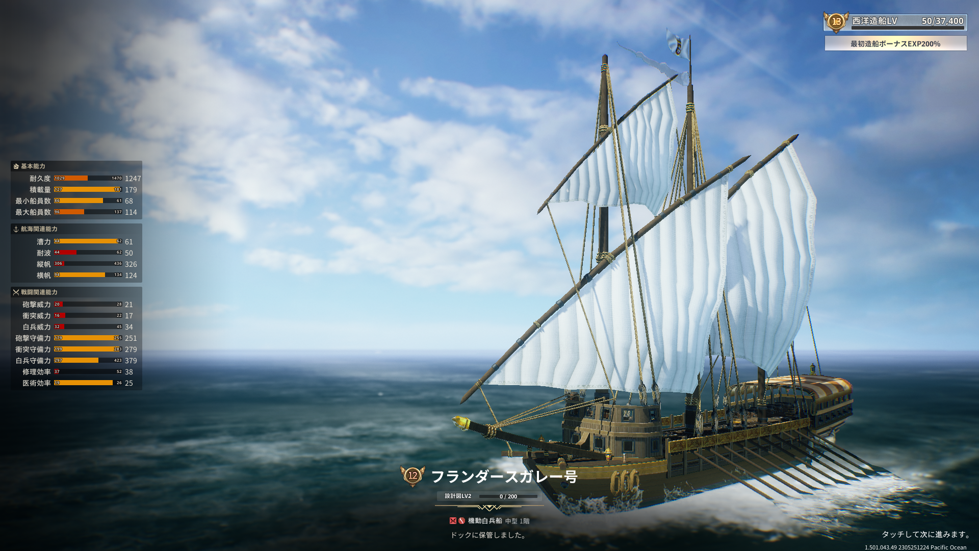 西洋造船LV13に達しましたので、中型船での編成としては一区切りといった感じになりました。ただ、大型船の造船に爵位LV5以上が必要だということを認識していなかったので、少し足踏み状態になりました・・・まあ、急いでも仕方ないので、勅命任務を再開しながら、材料集めを進めようと思います。