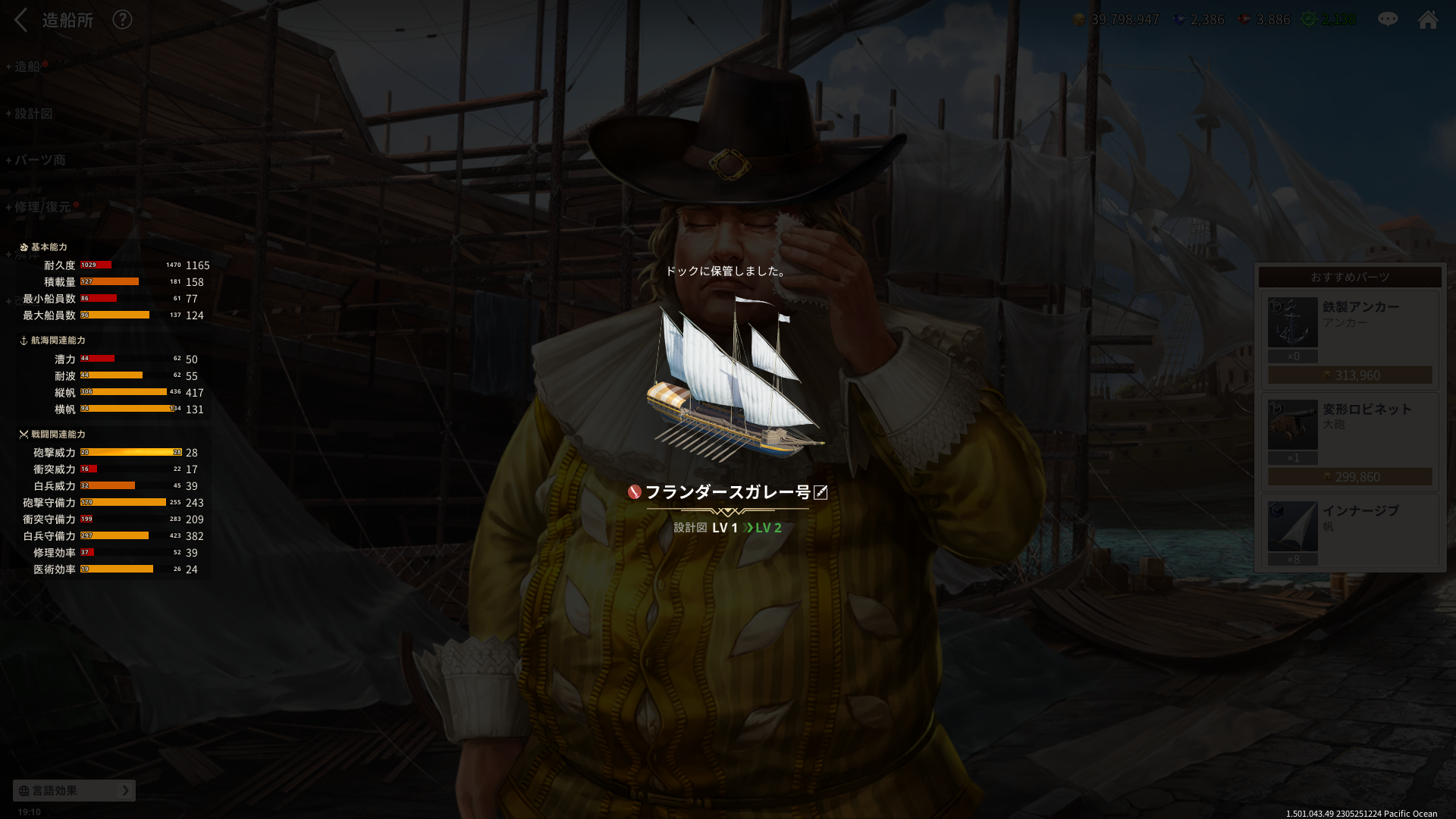 大型船を造船するためには、爵位がLV5以上必要だということに、直面して気付きました・・・急いで勅命任務を再開しました。1日にLV1か上げられないので、材料と設計図が揃って、2隻分の造船を同時にできる準備ができましたが、着手は数日後になりそうです・・・
