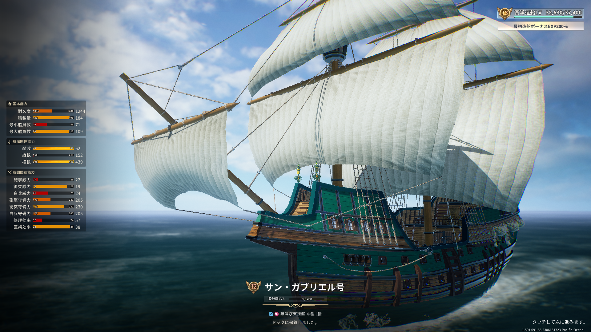 造船はランクを効率的に上げるために西洋タイプを中心にしてきましたが、そろそろランク14が見えてきました。なかなかランク15は造りにくいので、そろそろ東洋タイプも造っていこうかなと考えています。デザインは西洋の方が好きなのでゲームを攻略していくことが目的ですが。(^^♪