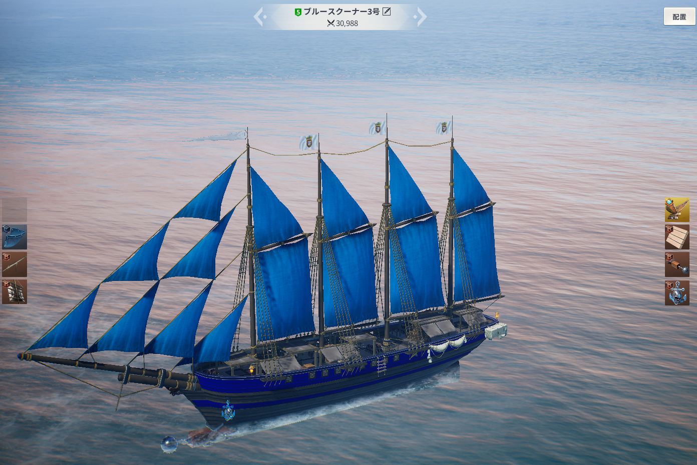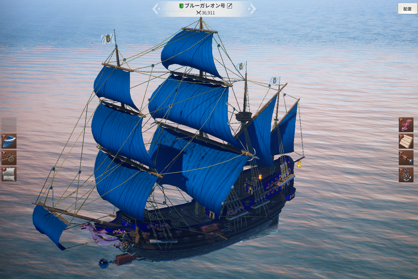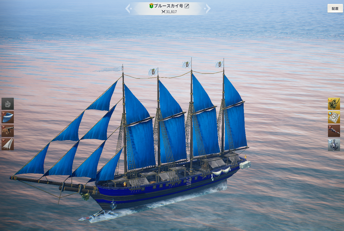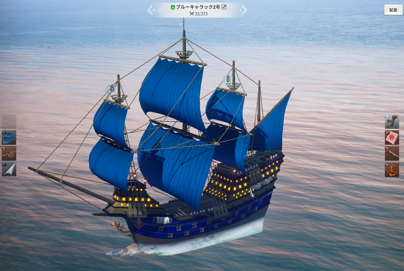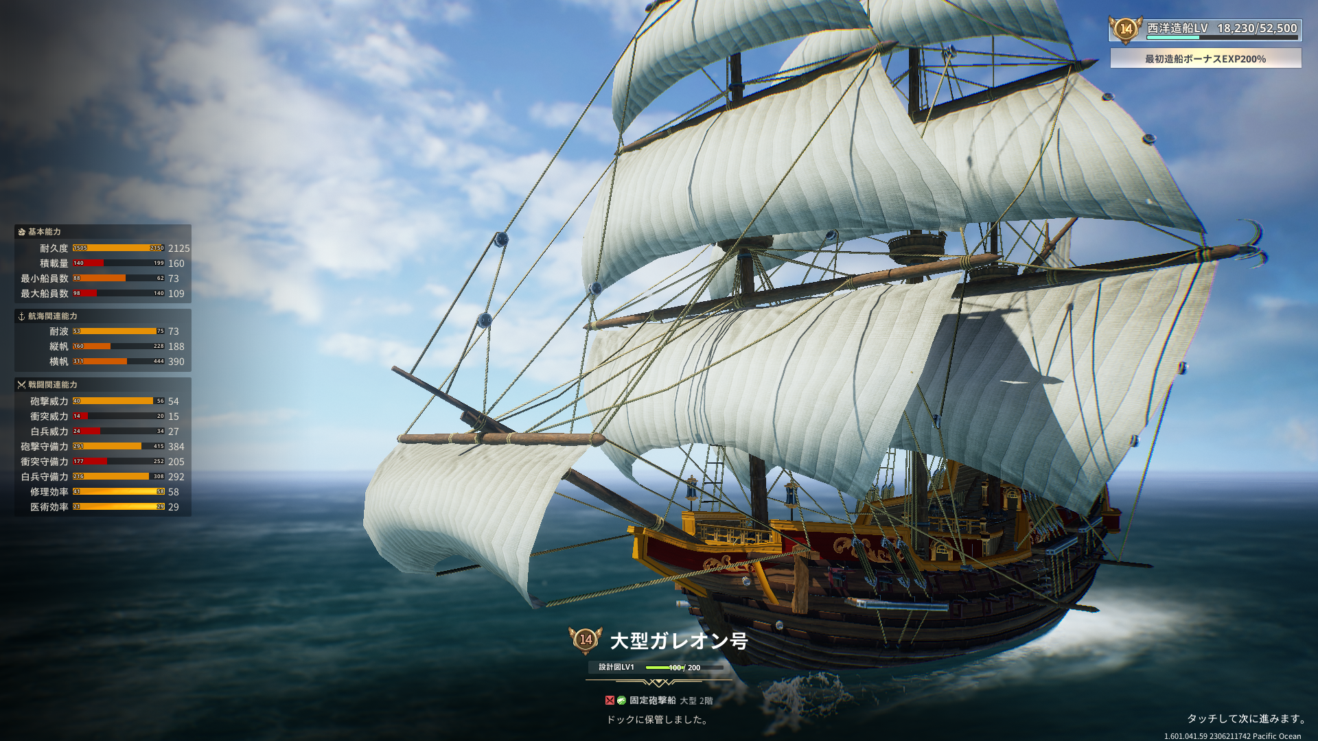 造船に成功=耐波最大レベル、さらに積載量が良ければと思いますが、戦闘能力はあまり意識していません。良い方がもちろん良いのですが、全ての値が最大レベルとなるのは期待できないので。