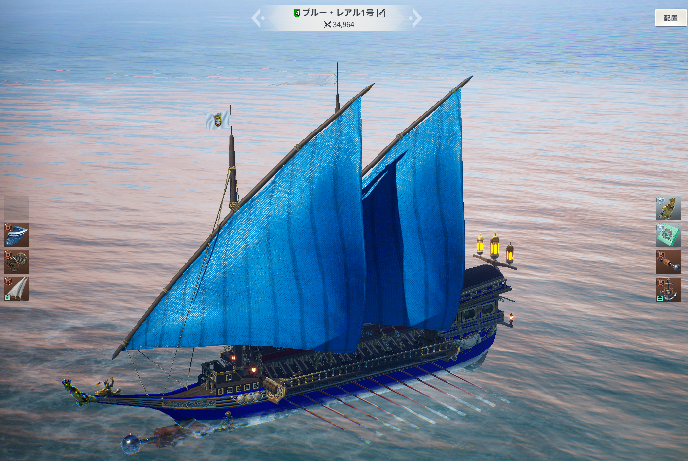 ランク14の大型ガレオン船とランク13の重キャラック船の造船が耐波最大レベルで成功し、一気に第一艦隊の耐波が95超となりました。これで少しだけ行ける範囲が広がります。