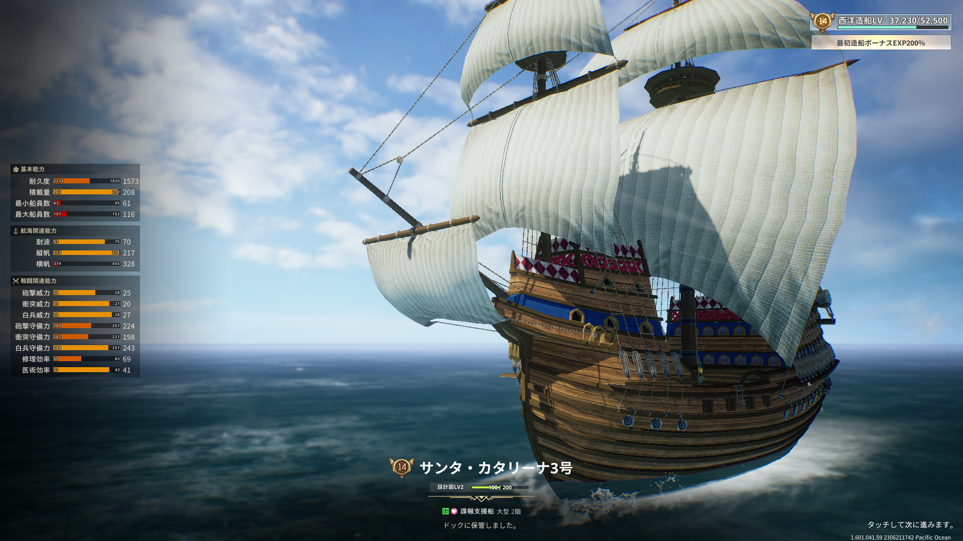 ランク14の造船でサンタ・カタリーナ船は3隻目で合格点でした。第一艦隊に組み込んで編成を見直しました。