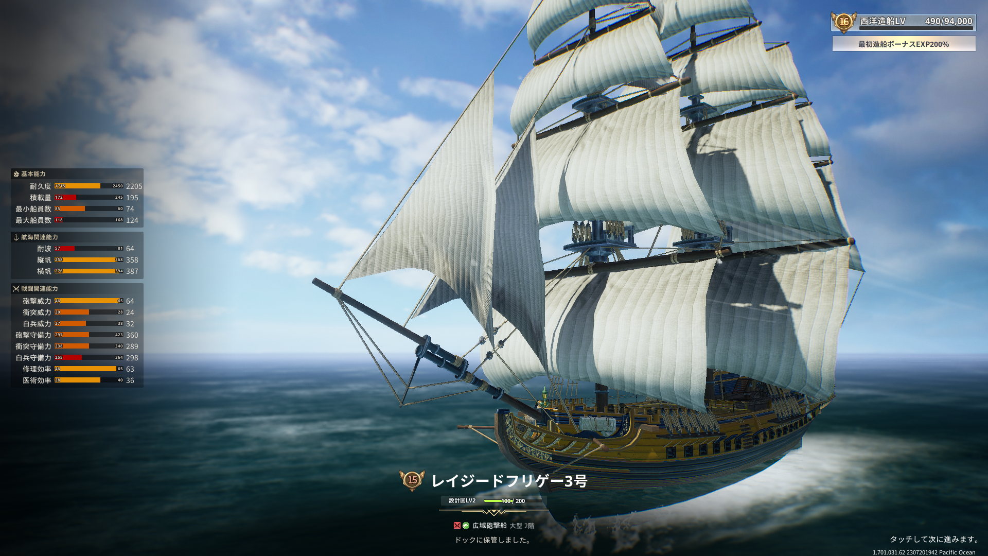 造ったレイジードフリゲート船を組み込んで編成を見直しました