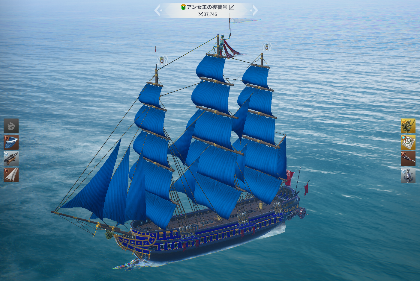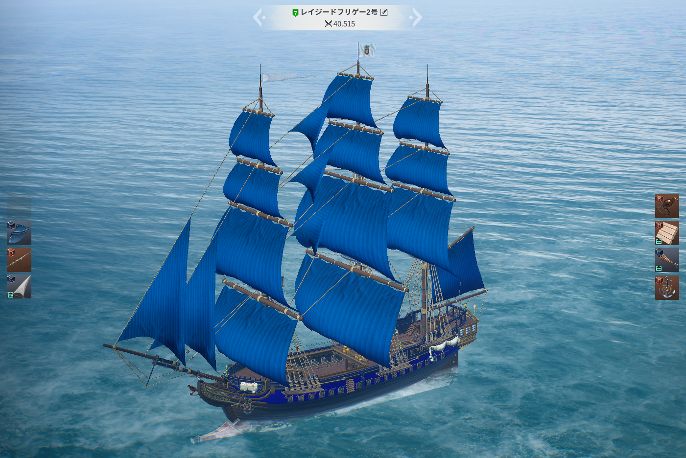 特になにもありません・・・アン女王の復讐船の理解度を上げることを意識して航海しています。造船も大型船の汎用図面がないので、低ランクのモノしか造れないので、テンションは上がりません・・・