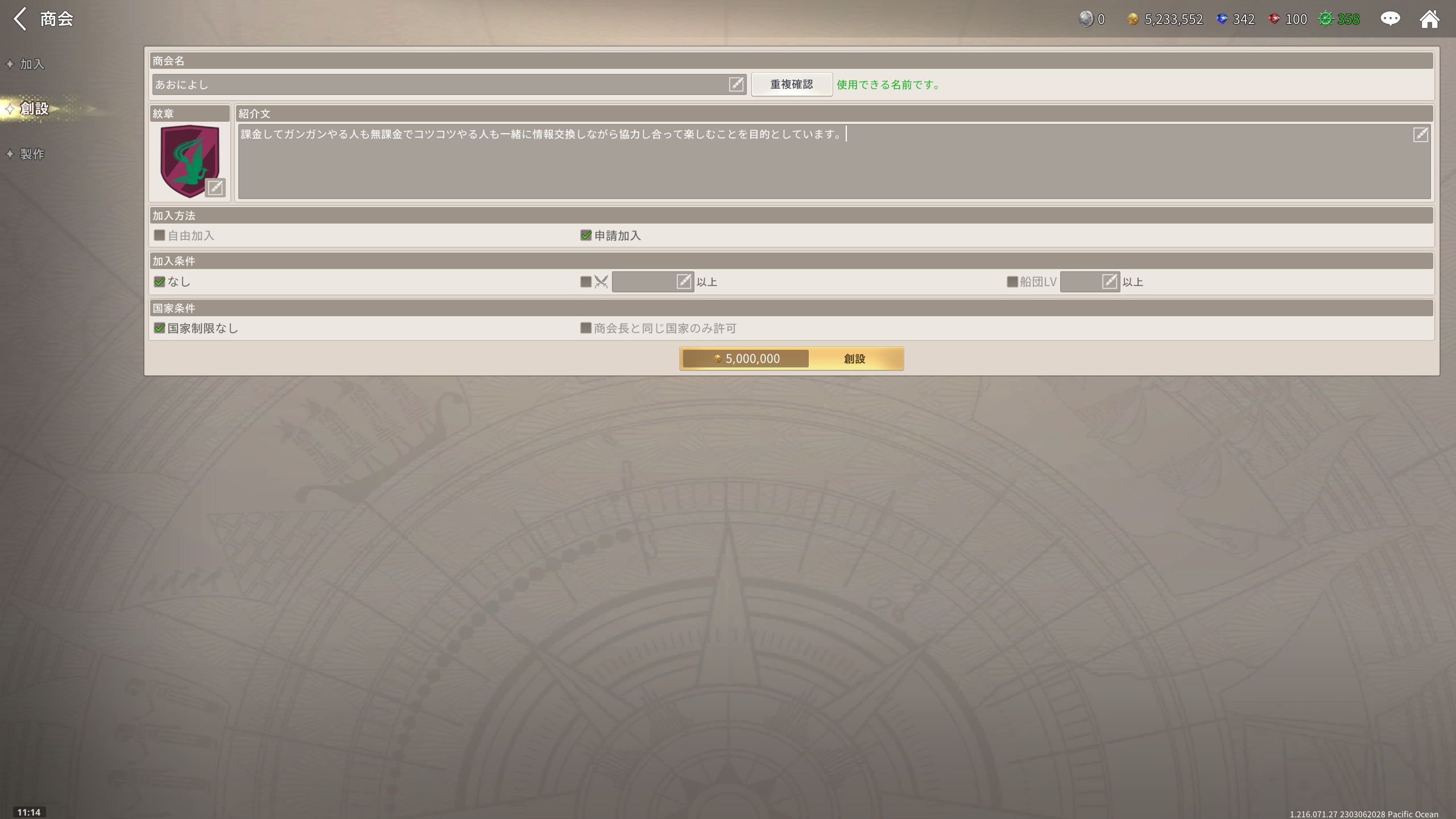 まずは、500万Dを貯めて、商会を創設しました。交易と各種報酬をかき集めて、最優先事項として取り組みました。とりあえず考えていた進め方はここまでです。これから後はこれからです。