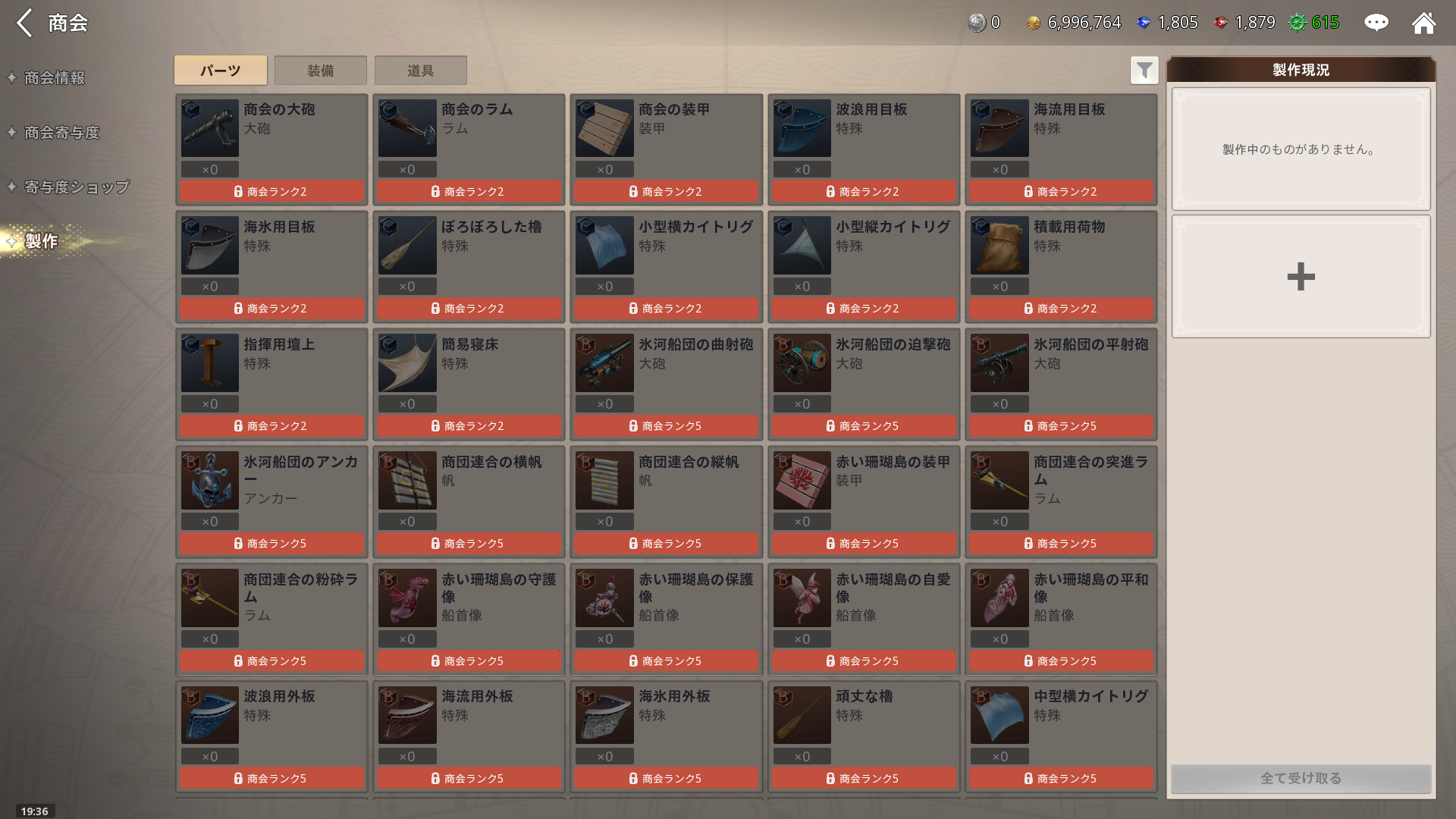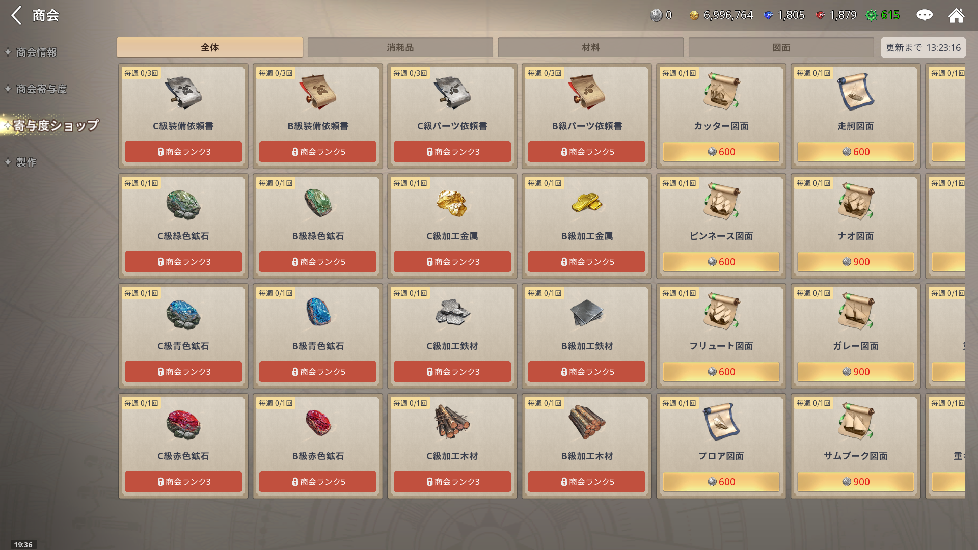 - 商会のレベルを上げると、商会通貨が得られやすくなり、図面やパーツなどを商会ショップで購入できる仕組みになっているのは工夫されている。
