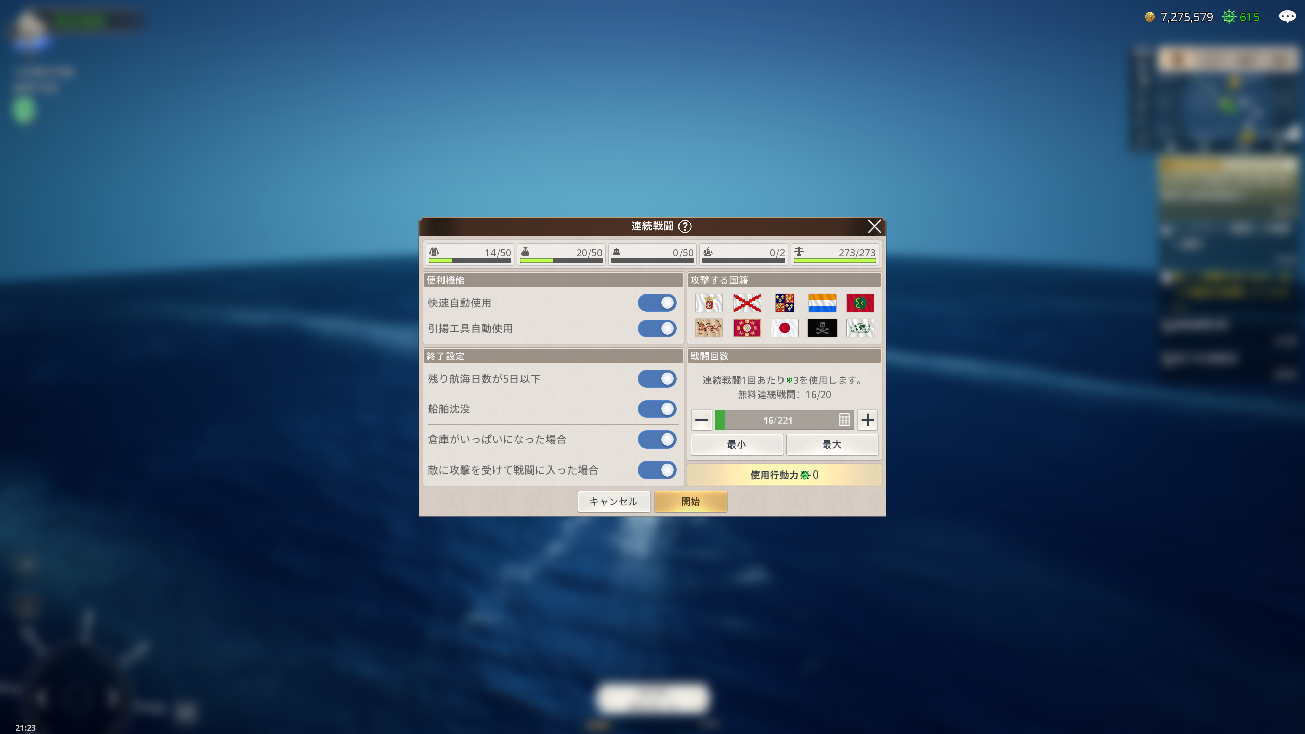 始めたのが遅かったので、僅か3日間ほどの体験版による先行プレイでしたが、準備体操としてはこれくらいで良かったと思います。正式オープンになってから同じようなことをより厳しい条件(お金がない、船が弱い、航海士のランクが低いなど)で進めるのは酷なので、これくらいの「お試し」で良かったです。
